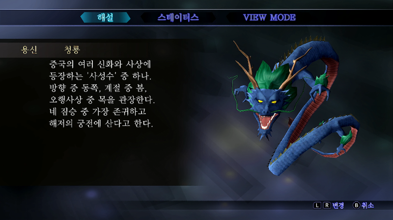 푸른빛의 용으로 그려지며, 출세와 성공을 의미한다.