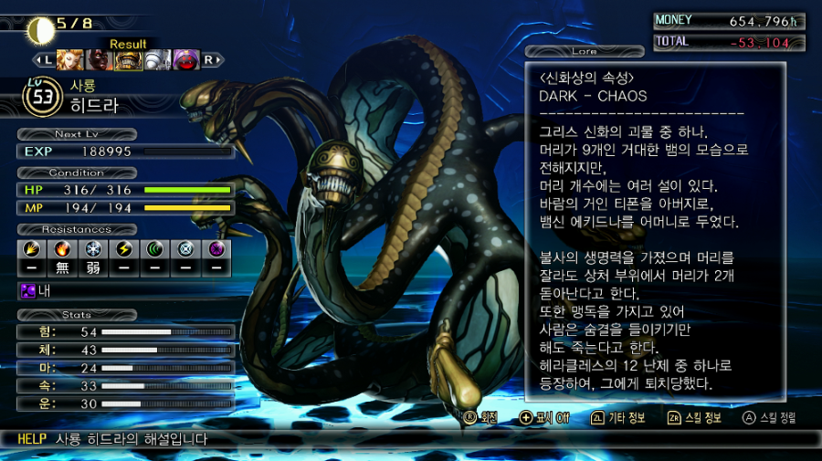 불사의 생명력을 가졌으며, 머리를 잘라도 상처 부위에서 머리가 2개 돋아난다고 한다.