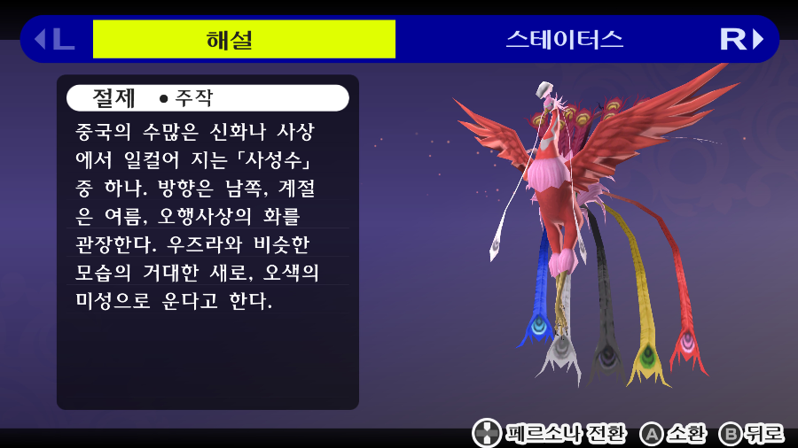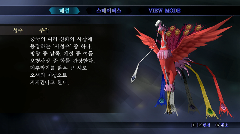 오색의 울음소리를 내며 몸도 오색으로 빛난다고 한다.