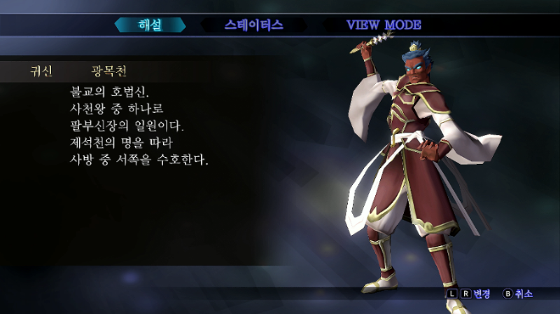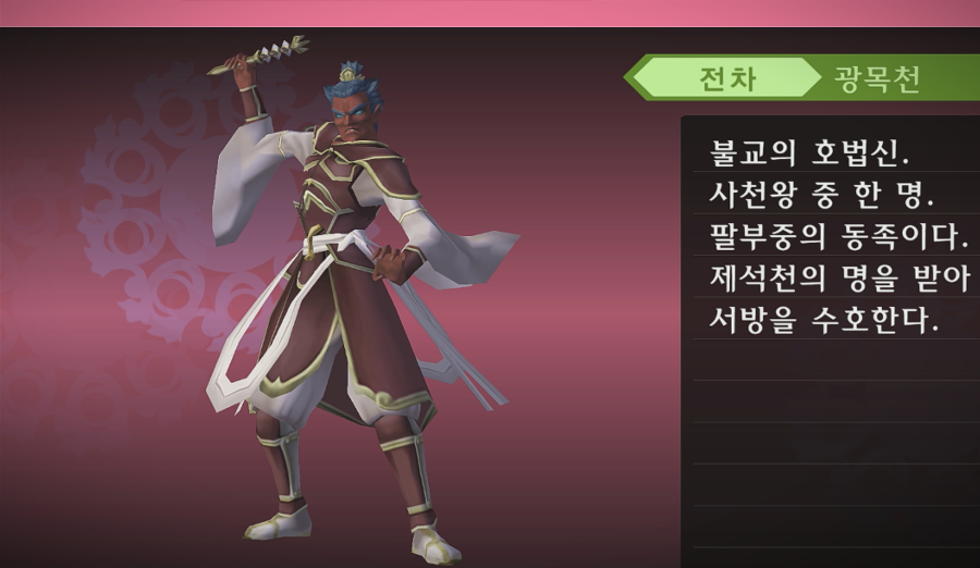 불교 사천왕 중 한 명. 광목천으로 잘 알려져 있다.