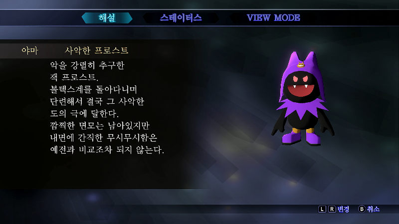 사악해졌기 때문에 난폭한 성격이 되어 있다.