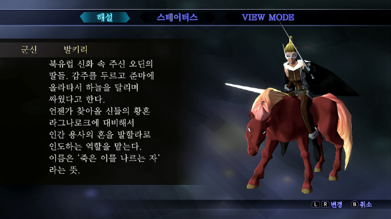 전장에 백조 모습으로 나타나 용감한 전사자의 영혼을 발할라로 인도한다.