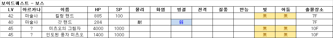- 7층의 보스를 격파하고 어둠 구슬을 얻어야 10층 보스 방에 들어갈 수 있음