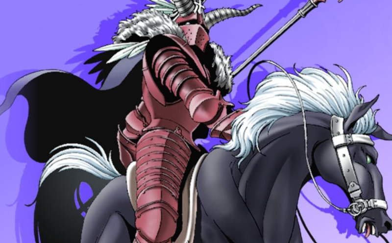 칠흑 갑옷을 입고 검은 말에 탄 기사의 모습으로 나타난다고 한다.