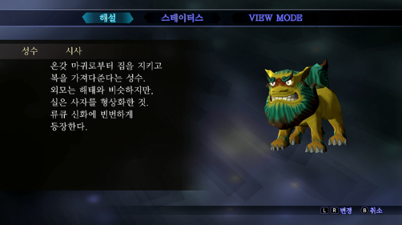 외모는 해태와 비슷하지만 실은 사자를 형상화한 것.