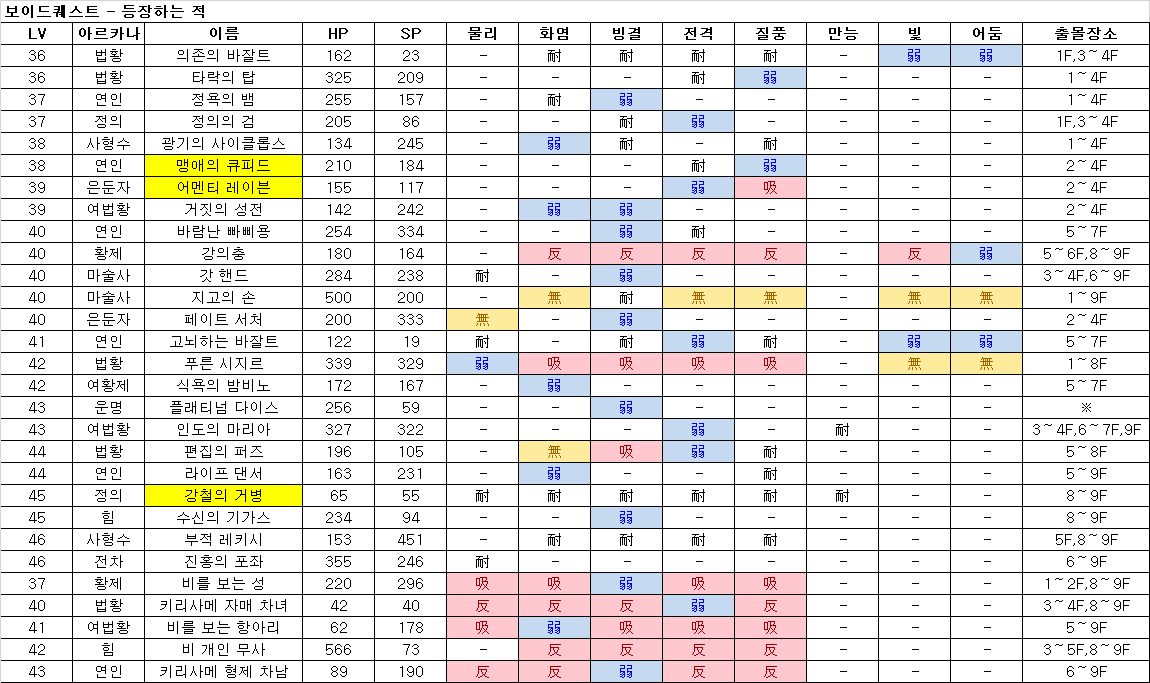 보이드퀘스트 10층에서 도피의 병 격파 : 주인공 무기 입수 나오토 구출 퀘스트 40 소재 마루큐좌에서 수집 (40 번개와 바람의 천칭) 퀘스트 36, 39, 44 소재 보이드퀘스트에서 확보할 것 (36 맹애의 큐피트, 39 어멘티 레이븐, 44 강철의 거병) 커뮤니티 보너스 증가일 이 플레이에서는 여기서 여황제 커뮤니티 MAX 달성함 |