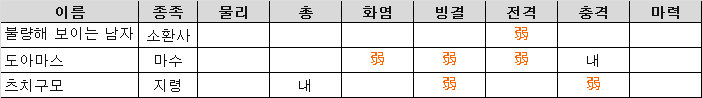 - 첫 전투에서 나오는 적은, 소환사에게는 링고의 지오, 악마에게는 애로의 부후를 사용하자.