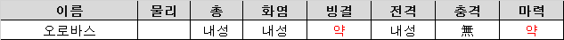 - 애시는 충격 약점, 파즈스는 빙결 약점