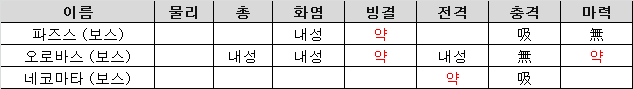 - 보스 - 파즈스. 파즈스는 빙결 약점
