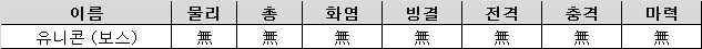 - 모든 속성 공격에 면역. 만능 공격 스킬을 준비하자