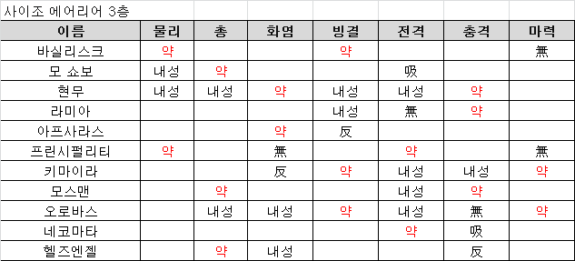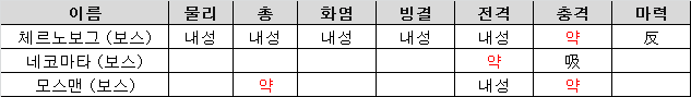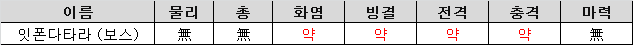 - 화염 빙결 전격 충격 모두 약점이다.