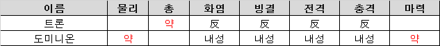 - 트론은 총 약점, 도미니온은 물리 약점. 물리 위주로 공격해 오므로 테트라칸을 준비하면 편하다