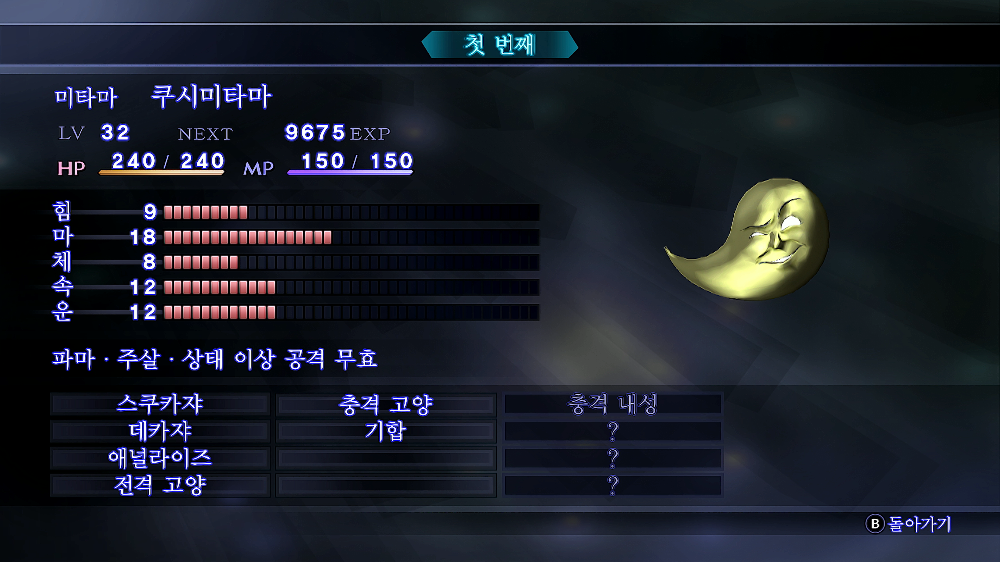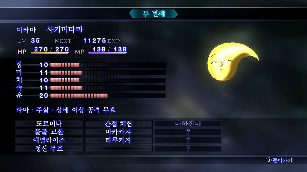 - 어혼(미타마)와 합체하면, 악마의 종류는 유지된 채 해당하는 능력치가 1.2배로 상승한다