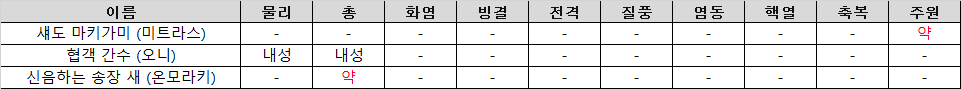 대상자 | 보스 | 난이도 | 비고 |