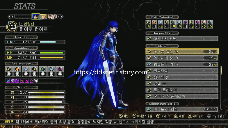 진여신전생5 공략 - 주인공 스킬 추천 예제