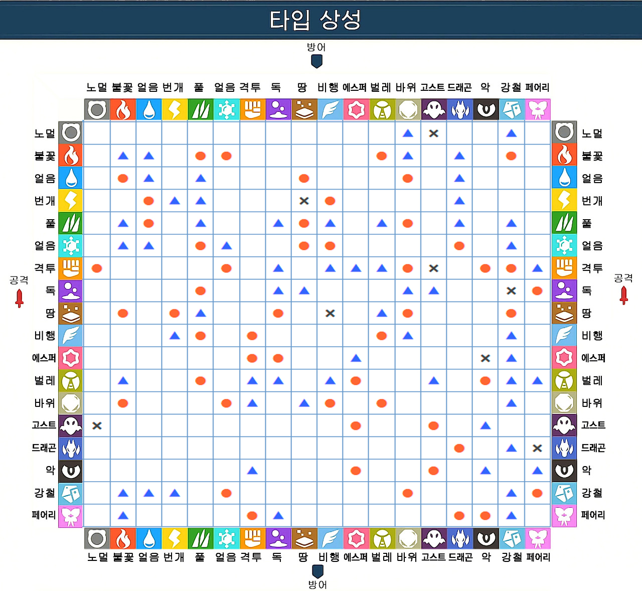 - 방어측의 타입은 포켓몬의 상성 타입.