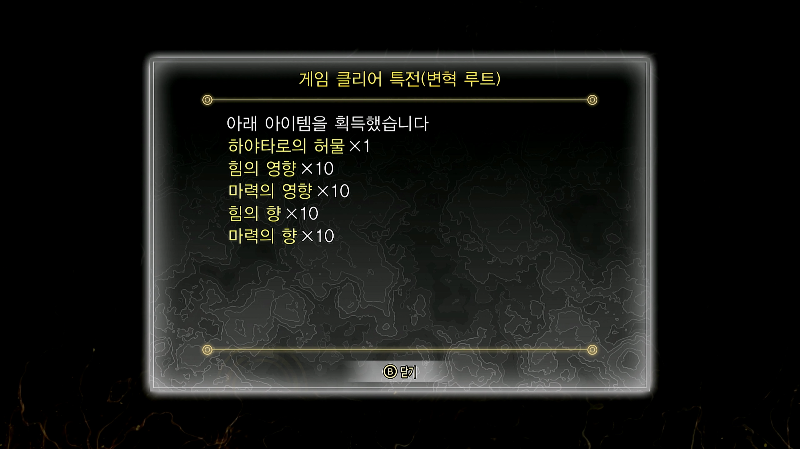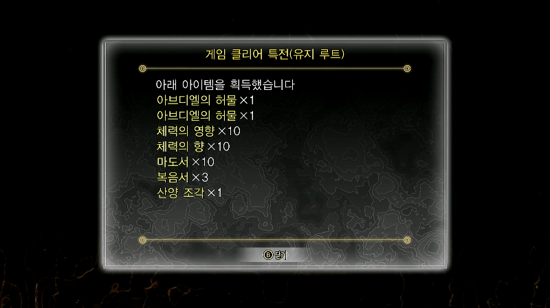 위 4가지 엔딩을 모두 완료한 세이브가 필요합니다.