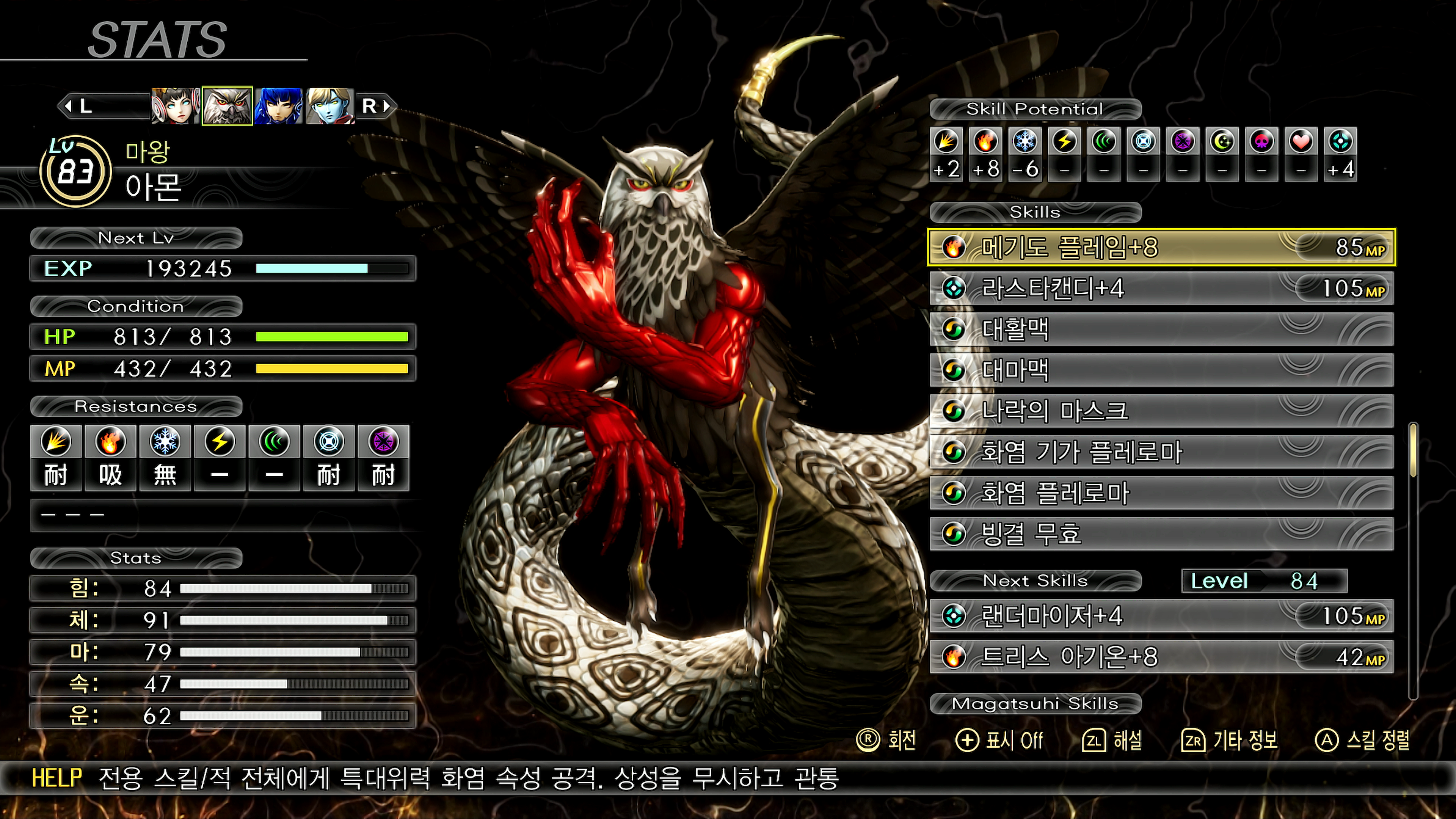 | 파르바티 | 마함마온+2 (파마 전체) 마하라쿠카쟈 마의도눔 데쿤다 용의눈 |