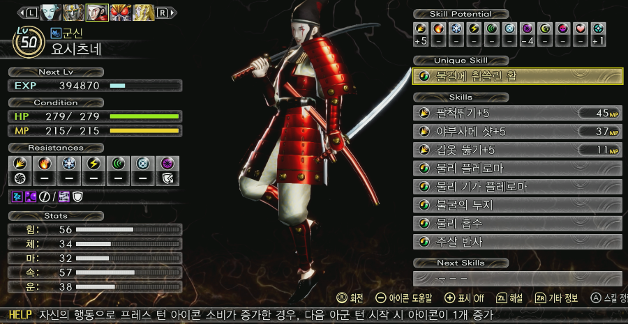 - 주인공의 주특기 공격 스킬 중 1가지를 선택해서 카무이 습득하여 최대 강화, 의존 능력치 강화 필요.