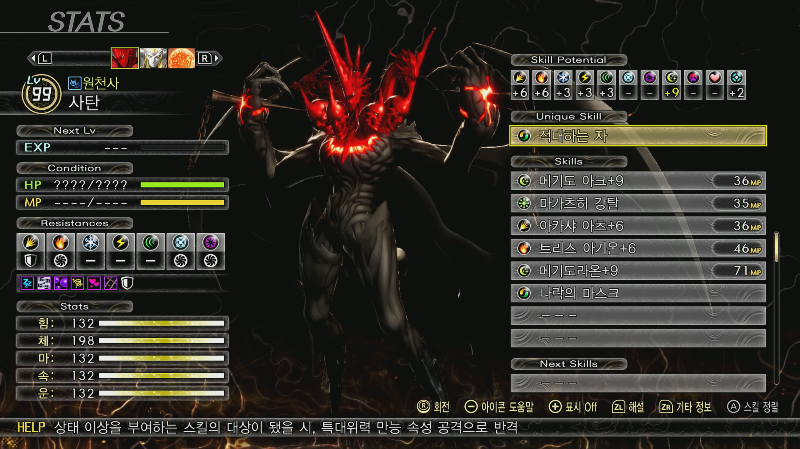 - 사탄의 스킬과 내성이 계속 변하므로 부하 악마의 특성을 알고 있어야 합니다.