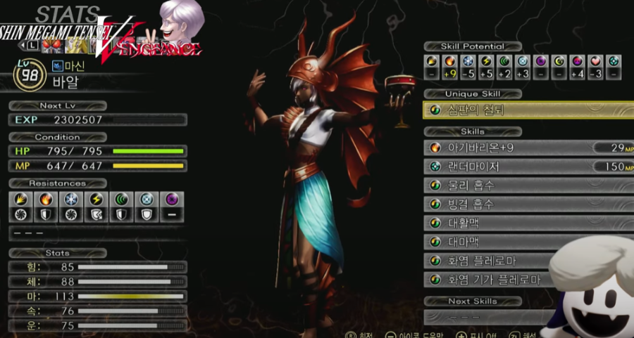- 사탄의 스킬과 내성이 계속 변하므로 부하 악마의 특성을 알고 있어야 합니다.