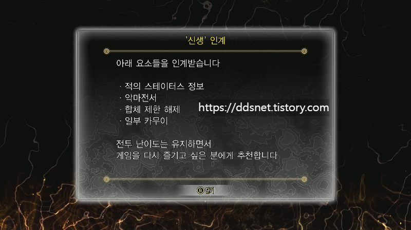 - 주인공의 레벨 등 육성 요소가 초기화된 상태로 2회차 플레이를 진행하는 모드