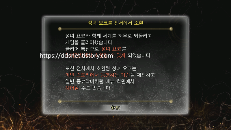 - 요코 루트 클리어 : 성녀 요코 소환 가능해짐