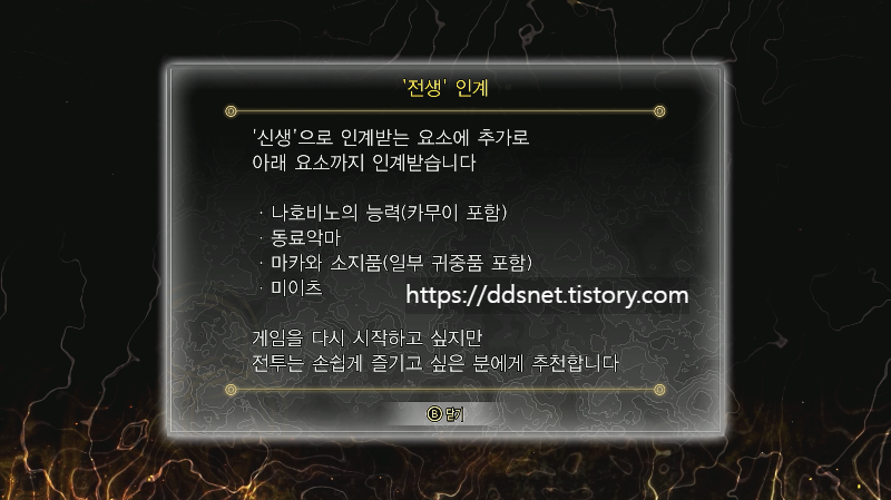 - 이전 플레이 데이터 육성 정보를 가지고 시작하는 모드