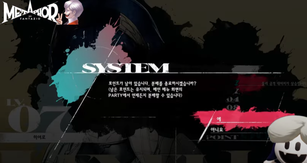 - 이후 진행 난이도가 오르고, 주인공의 아키타이프 특화 분야가 맞춰지는 시기에 능력치 분배를 추가하는 것이 게임 진행에 도움이 될 것으로 보입니다