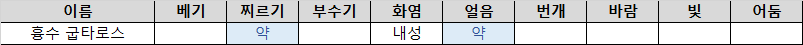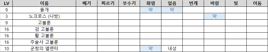 - 힐러는 타격 약점에 찔리므로, 타격 전체공격을 연발하는 고볼룬 상대로는 비추천