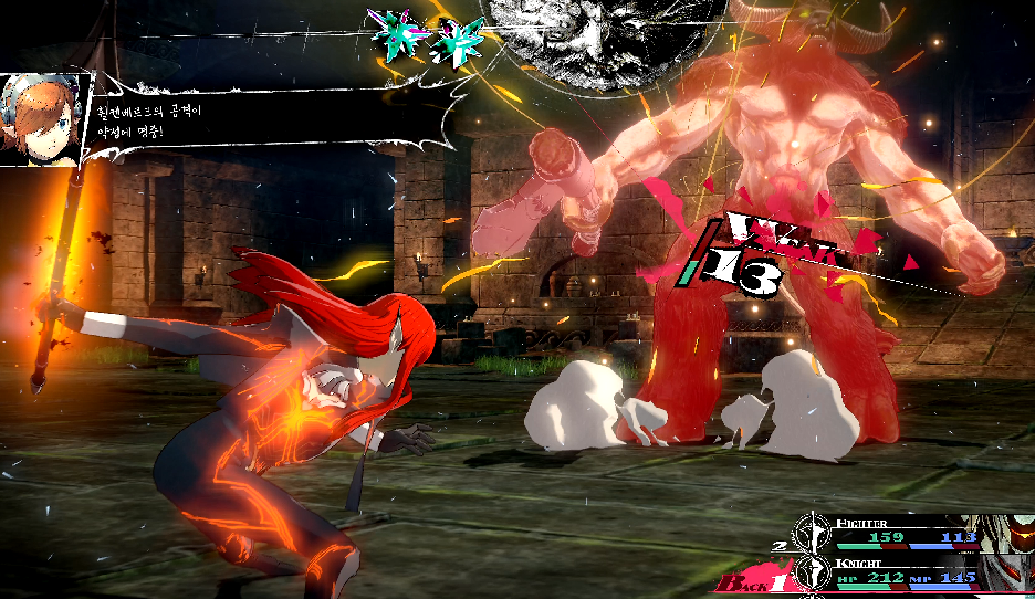 - 약점은 화염이므로, 매지션의 화염 마법, 드래곤을 잡고 얻은 대검을 정화한 화염 대검 통상공격으로 약점을 찔러서 1턴 안에 격파해야 함