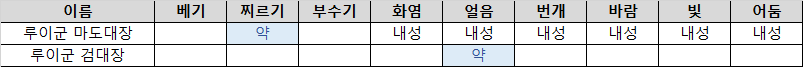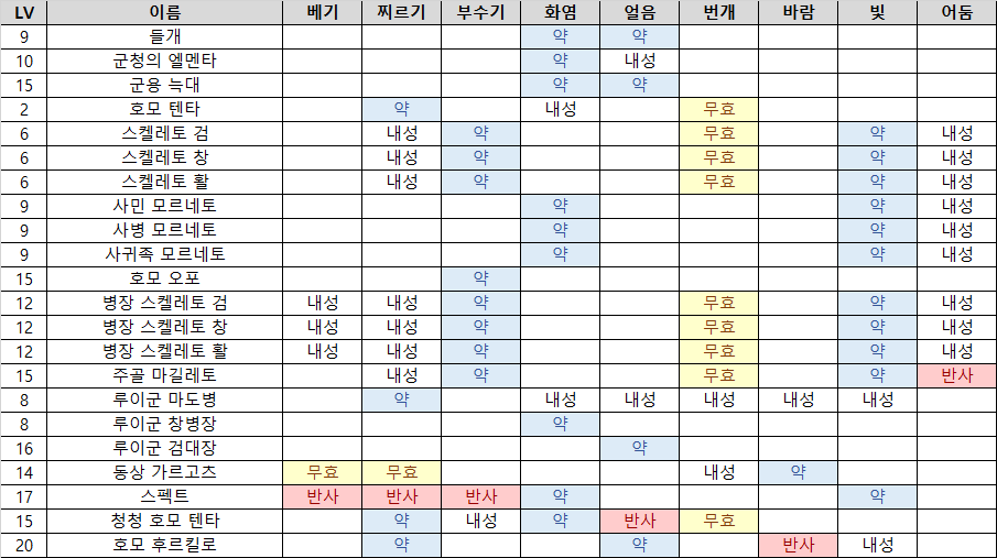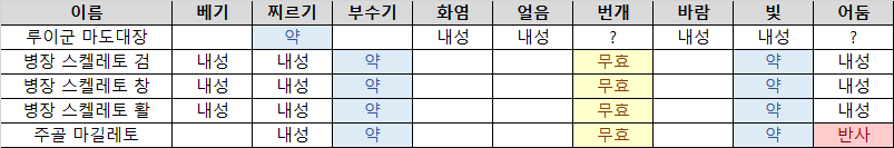 - 마도대장 본인은 마법은 전체 내성, 찌르기 공격에 약함