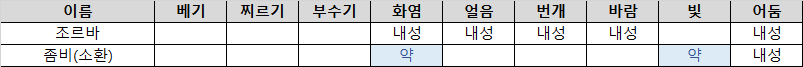 - 조르바는 마법 내성이므로 물리 스킬로 상대