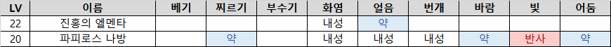 - 얼음 흡수 / 번개약점