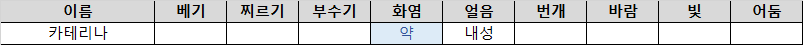 - 얼음 반사 / 번개 바람 빛 어둠 내성 / 화염 약점