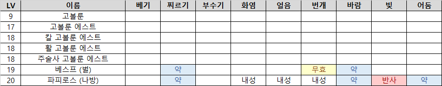 - 화염무효 / 베기 찌르기 내성 / 부수기 약점