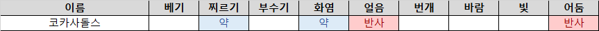 - 얼음&어둠 반사 / 찌르기&화염 약점