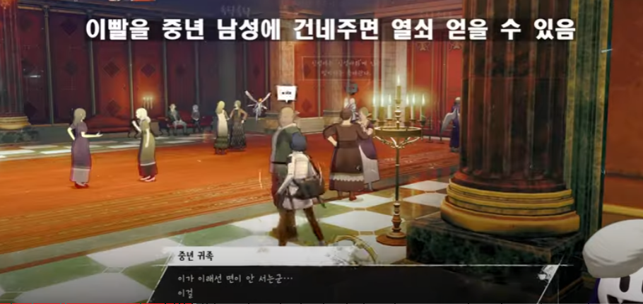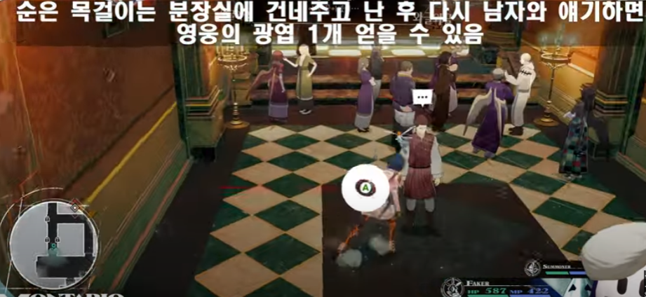- 신발 끈을 앉아 있는 여자 신도와 대화하면 알타베리 과자 입수 : 동영상 링크 참조