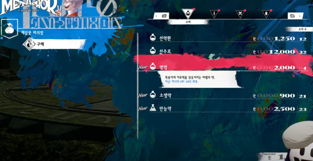 - 각종 회복 아이템과 비싼 무기 방어구를 판매하지만, 반드시 구매할 필요는 없음