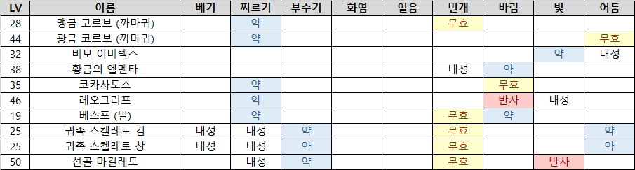 - 찌르기&화염 약점