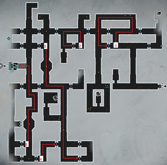 - 아래 맵의 숫자 순서 대로 진행하면 통과 가능