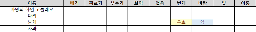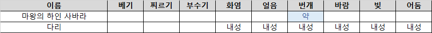 - 이전과 마찬가지로 약점 변경을 하는데, 약점 외는 모두 무효시키므로 주의