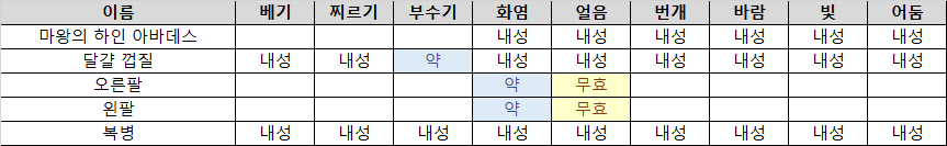 - 특별한 약점은 없음