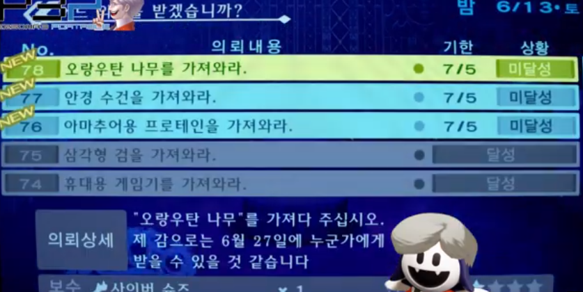 - 6/13에 의뢰가 추가되므로, 벨벳 룸에서 체크할 것
