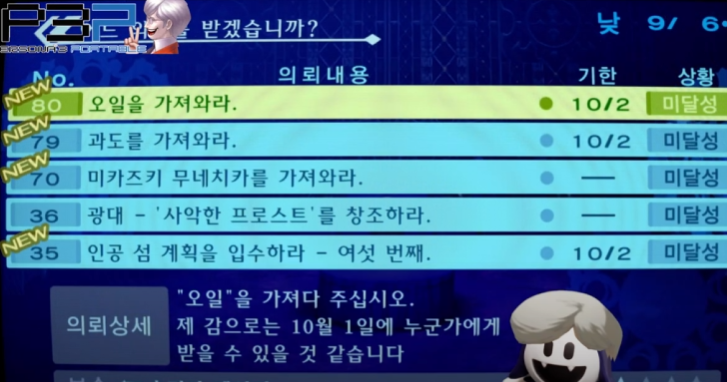 페르소나 3 포터블 공략 - 퀘스트 의뢰 페르소나 3 공략 정리 모음 페르소나 3 공략 정리 리스트페르소나 3 공략 정리 모음 2023-1-19 리마스터로 발매된 페르소나 3 포터블 기반으로 작성된 공