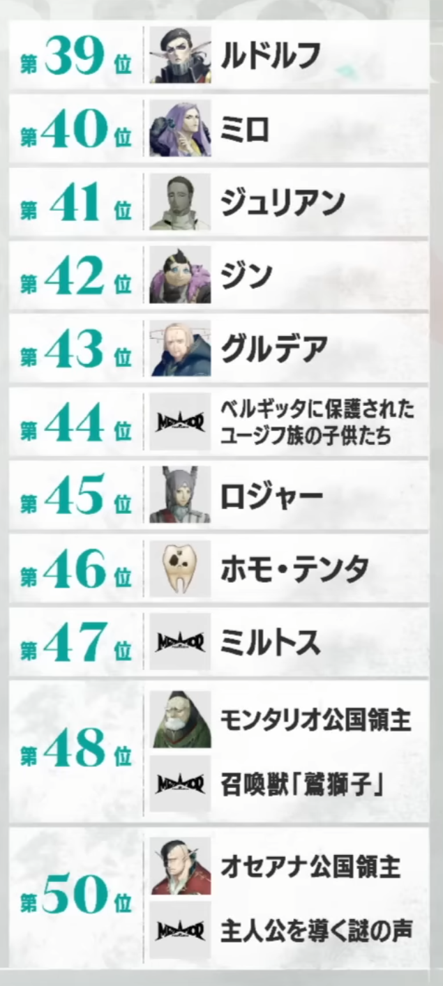 - 50위 (공통) 오세아나 공국 영주 & 주인공을 이끄는 수수께끼의 목소리
