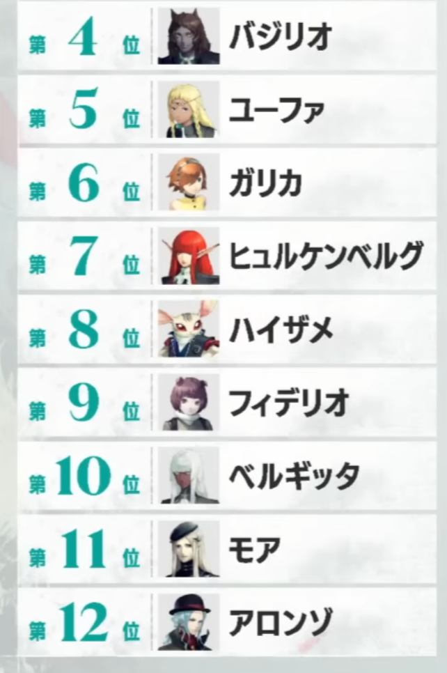 메타포 리판타지오의 캐릭터 인기순위 투표가 공식 사이트에서 개최되었고,