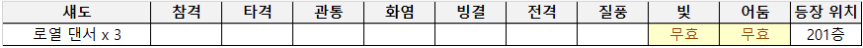 - 빛 반사 / 화염 빙결 전격 질풍 어둠 무효