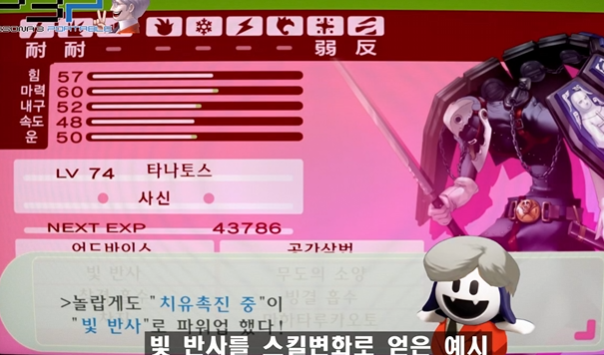 - 시간과 노력이 필요하나, 타나토스가 기본 소유하고 있는 스킬인 메기도라를 스킬 변화시켜 '참격흡수' 로 만드는 것도 가능함 : 동영상 링크 참조