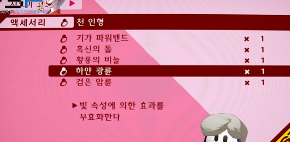 - 정의 아르카나 멜키세덱의 수태아이템 '하얀광륜' 액세서리를 장비하는 것으로도 대처 가능
